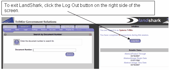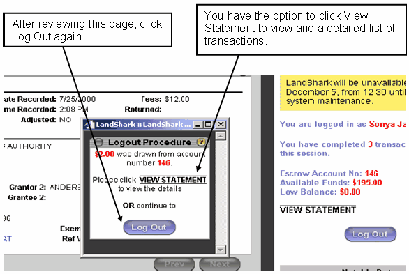 A log off procedure page will appear which summarizes the transactions and amount that will be charged to your escrow account or credit card.